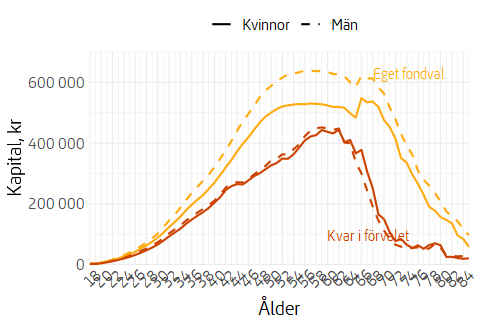Not: Åldersspannet i figuren är begränsat till 18–85 år och visar pensionssparare, inte pensionärer.